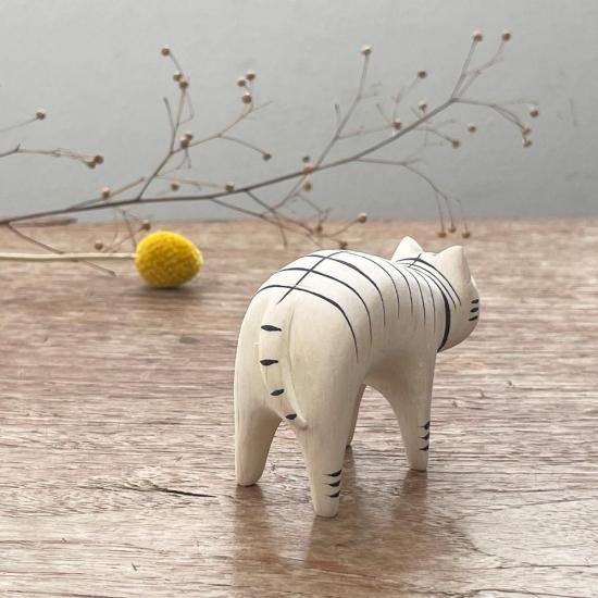 WOODEN ORNAMENT/POLEPOLE ANIMAL TABBY CAT